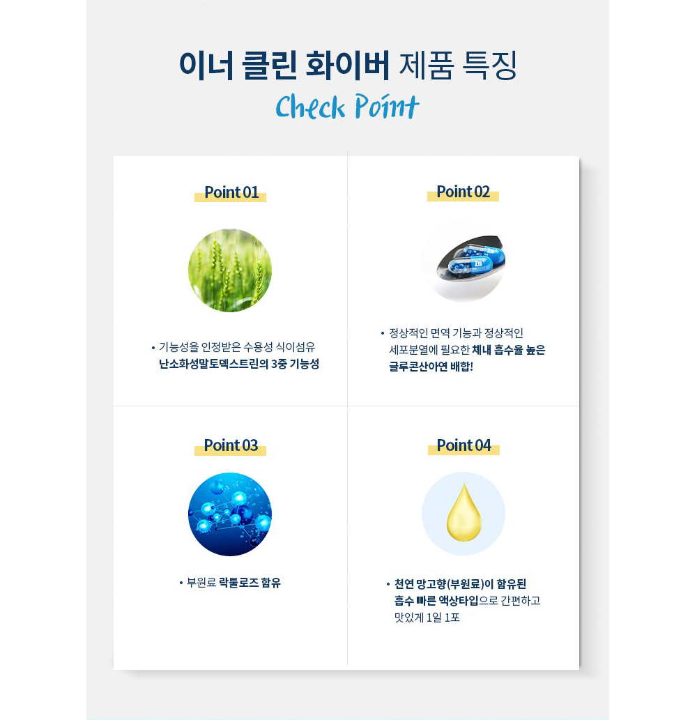 클린즈 이너 클린 화이버 by MLB-DJ 2024. 2. 15. 공유하기 게시글 관리 MAKE LIFE BETTER Dr. J 저작자표시 (새창열림) '클린즈' 카테고리의 다른 글 라이화이버 (0) 2024.02.15 패러웨이 플러스 (0) 2024.02.15 관련글 라이화이버 패러웨이 플러스